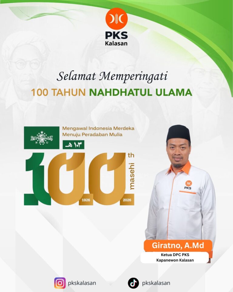 DPC PKS Kalasan; “Selamat memperingati 100 tahun Nahdatul Ulama”.