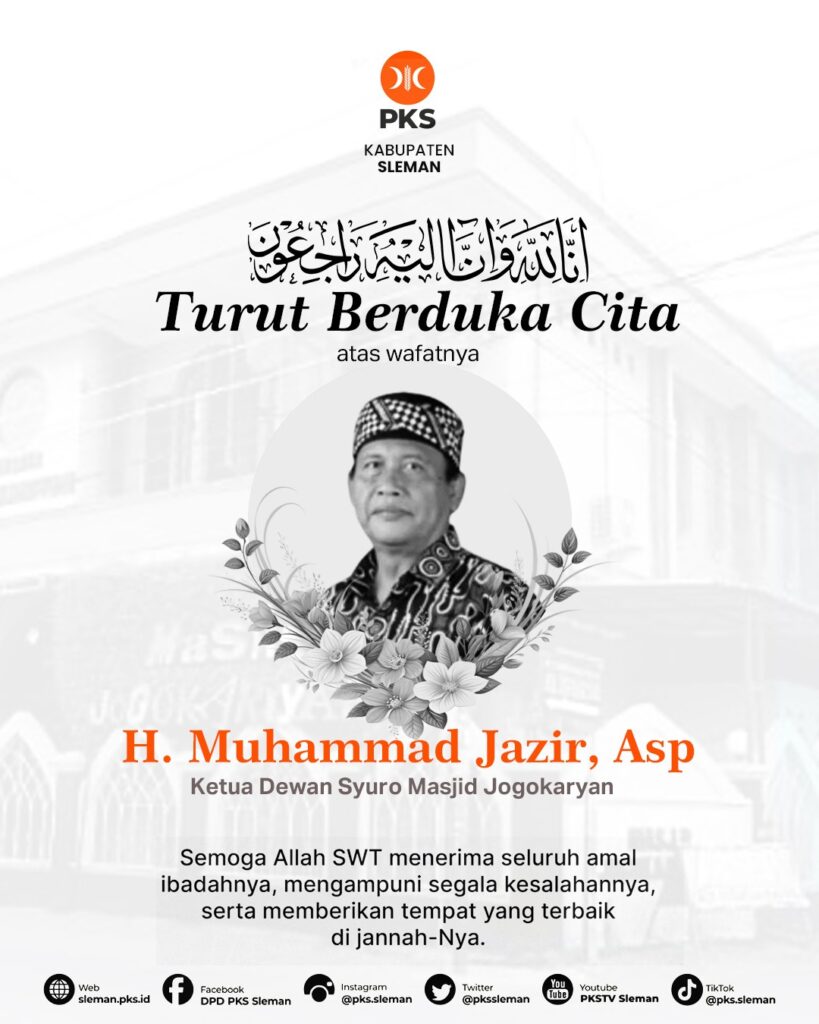 Kami segenap keluarga besar DPC PKS Kalasan turut berduka cita yang sedalam-dalamnya atas wafatnya